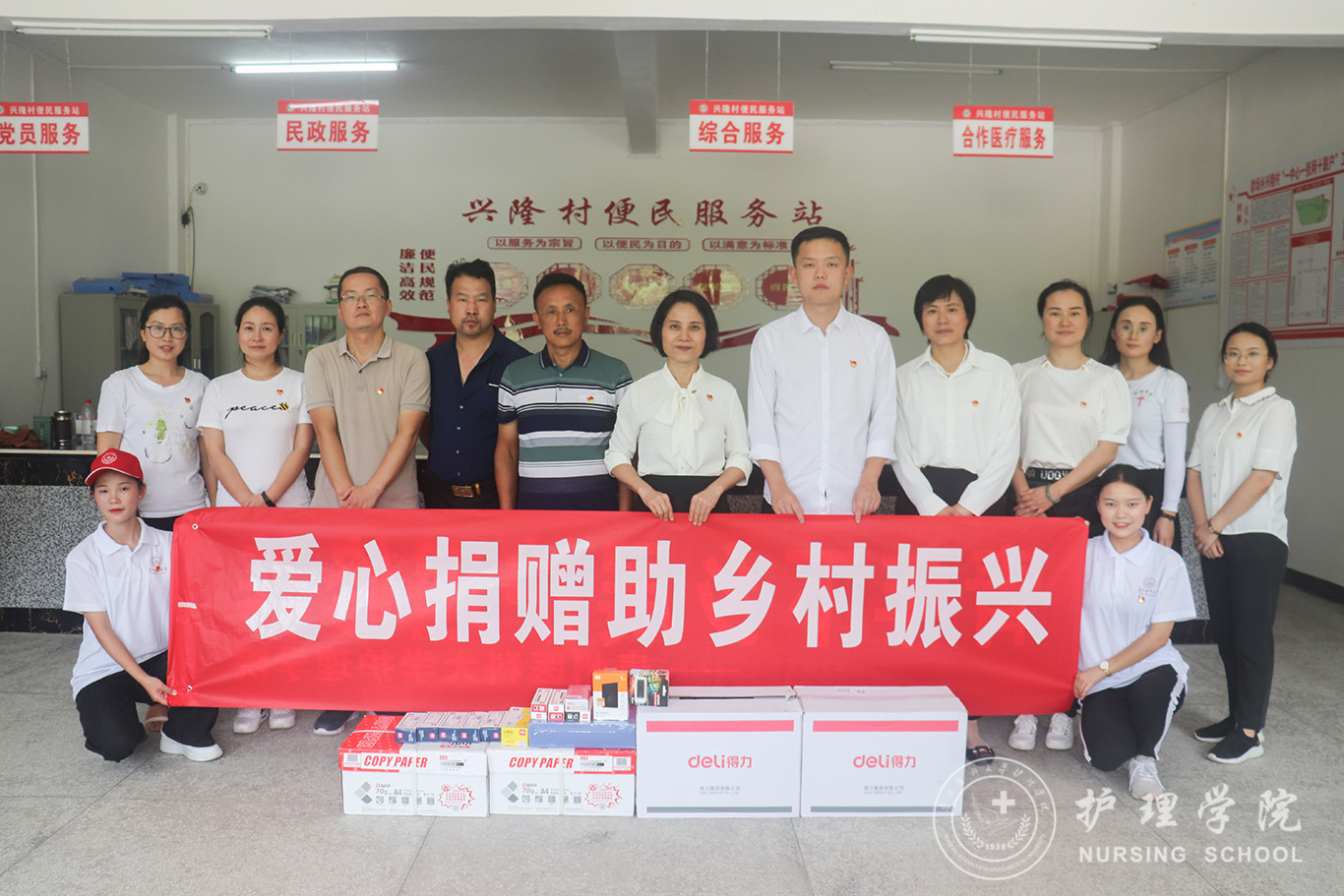 学院驻村第一书记马景瑶同志通过前期调研,了解到兴隆村急需一些用品,因此在本次社会实践活动中,学院向兴隆村捐赠了急需的办公用品、医疗器械和药品,并举行了捐赠仪式。