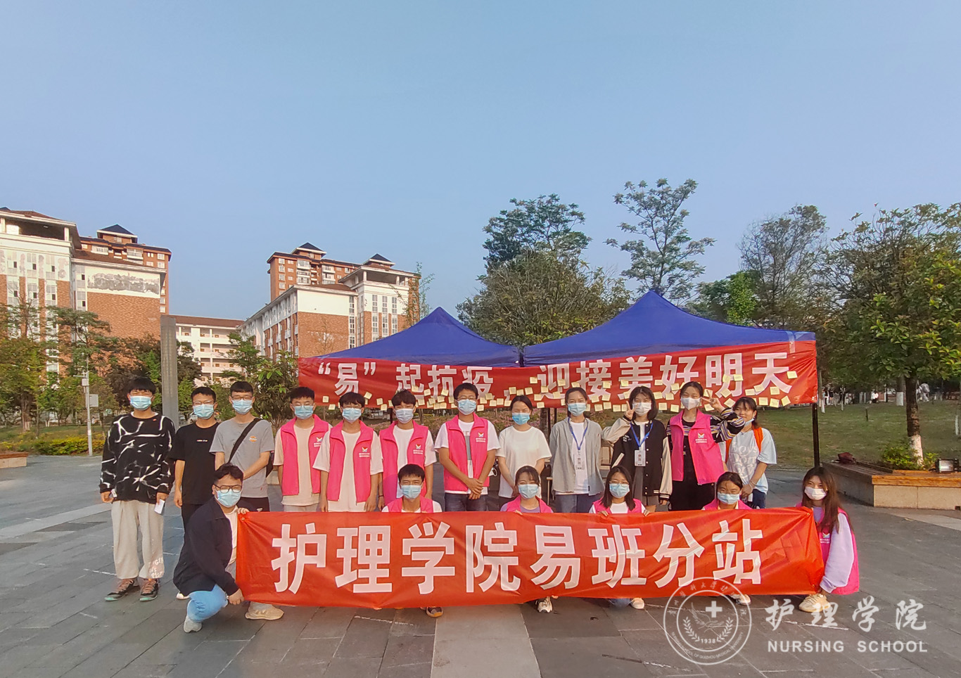 4月27日,为丰富贵医学子的校园文化生活,排解疫情期间所带来的心理压力和生活压力,让广大学子心怀希望、共渡难关,kaiyun开云官方网站易班分站在南校区一食堂小广场内开展了以“‘易’起抗疫,迎接美好明天”为主题的线上线下校园宣传活动。此次活动由kaiyun开云官方网站易班分站全体成员组织,学校各学院各年级同学共同参与。