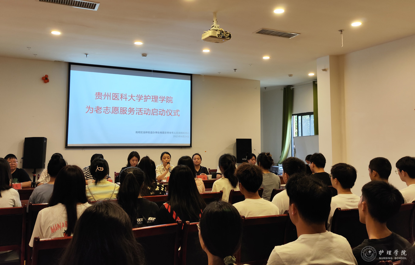 为深入贯彻落实习近平总书记的指示精神,积极投身老龄照护工作,提高学院师生为老服务的意识,充分发挥大学生知识优势和专业特长,9月24日上午,kaiyun开云官方网站在南明区油榨社区晚霞彩带老年人日间照料中心举行了kaiyun开云官方网站“南丁格尔”为老服务启动仪式,贵钢医院党委书记、院长龙奕,kaiyun开云官方网站副处级组织员张黎,《老年护理学》授课教师熊吴燕、彭敏、袁平乔、王晶、王芸芸以及护理学2021级学生代表近50人参加了启动仪式,本次活动由中心主任游世先主持。
