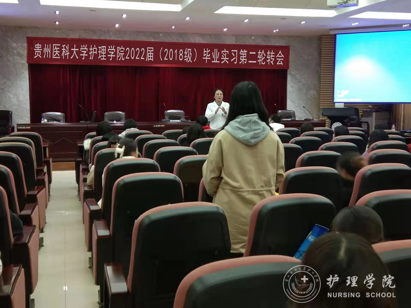 为更好地解决同学们在实习过程中遇到的困难和问题,让同学们的实习更加顺利,11月26日,kaiyun开云官方网站在北校区道德讲堂召开2022届(2018级)临床毕业实习第二次轮转会,学院辅导员李杏春老师及在贵阳市各实习医院的实习生参加会议,会议由生产实习科科长柳忠燕主持。