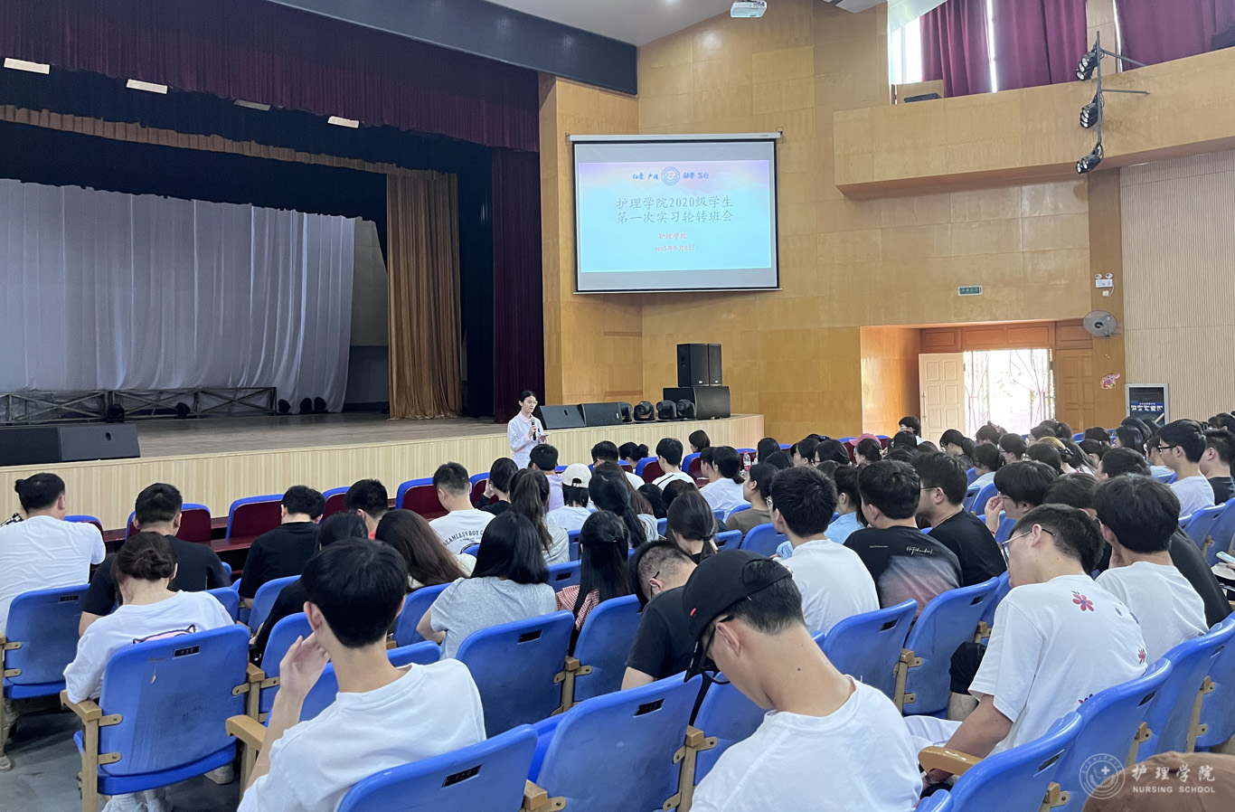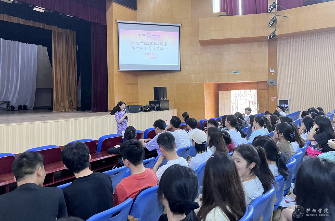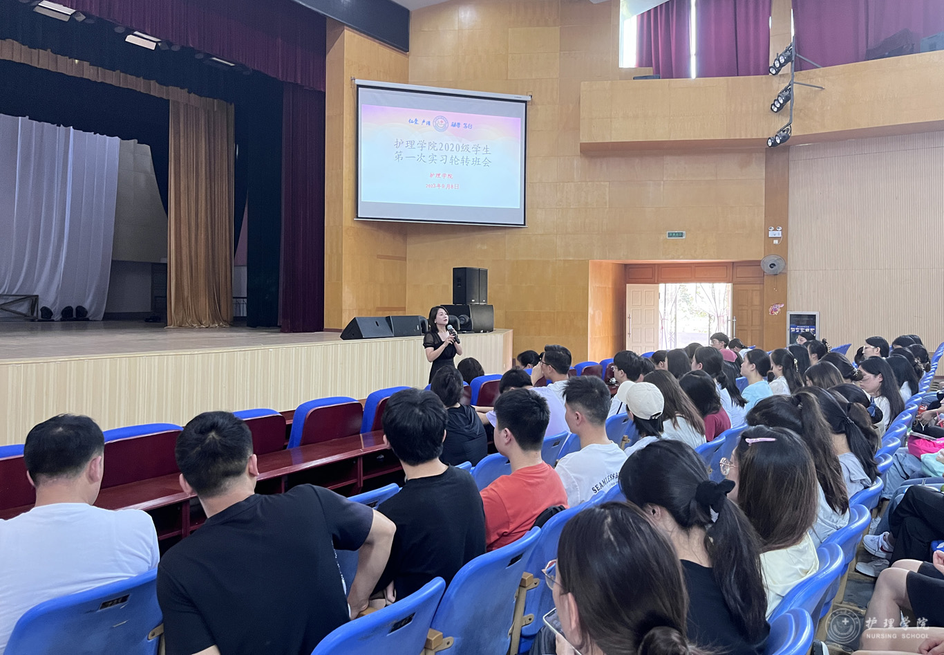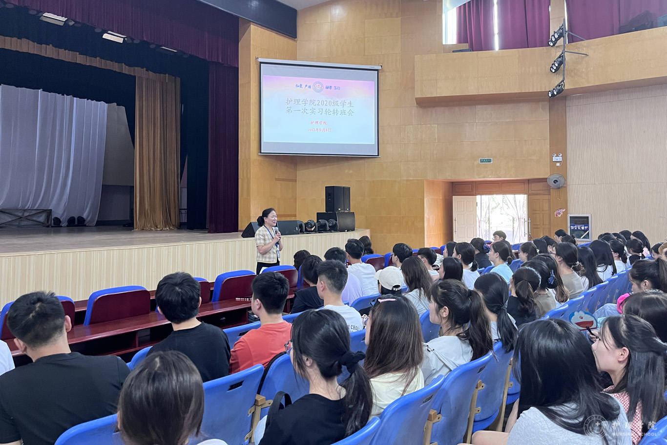 9月8日,kaiyun开云官方网站在北校区礼堂召开2024届(2020级)毕业实习轮转会。kaiyun开云官方网站院长李亚玲、副院长刘志燕、副处级组织员张黎、学生科副科长毕丽、辅导员刘妍以及全体2020级学生参加线下线上会议。会议由生产实习科科长柳忠燕主持。