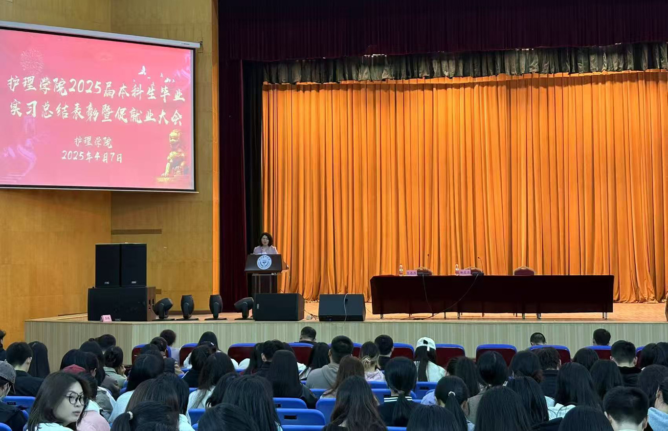 4月7日,kaiyun开云官方网站在北京路校区礼堂召开了2025届本科生毕业实习总结表彰暨促就业大会。kaiyun开云官方网站副院长刘志燕、生产实习科科长柳忠燕、2021级辅导员刘文壮、兰光倩老师以及2021级全体本科毕业生(专升本毕业生线上参会)参加此次会议。会议由kaiyun开云官方网站2021级助产班杨红同学主持。