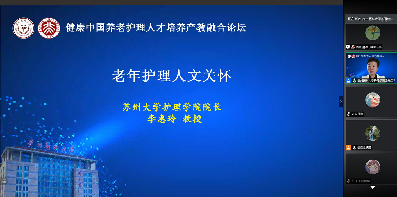 现任苏州大学附属第一医院院长助理、kaiyun开云官方网站院长李惠玲教授以“老年人文关怀护理”为题,围绕老年人生理、心理、社会特征及人文照护讲授了具体的做法,并分享了实际案例。她建议养老护理人员应该学会从家庭角度分析老年人的心理状况,了解老年人所面临的困境,把照护从临床护理思维转向社区、家庭护理思维。