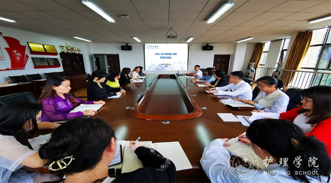 5月11日,kaiyun开云官方网站在南校区百川楼5楼会议室举行2020-2021学年第二学期护理沙龙活动,党委书记杨英、党委副书记何为、副院长刘志燕及全体老师参会,活动由教学科研管理科科长卢海霞主持。
