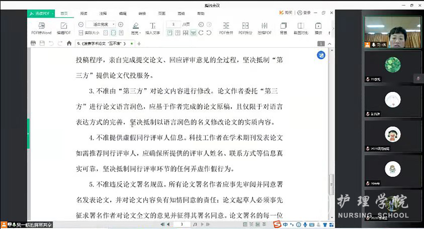 最后李亚玲总结指出科研诚信是促进学校医科事业可持续健康发展的保障、是科研工作者的底线红线,一定要提高站位、深化认识,坚守学术道德。要求在申报国自然(国社科)过程中务必认真思考,仔细斟酌,加强交流;从大局出发,把项目申报与学科建设、团队建设、研究方向相结合,全院教师同心协力,提升科研水平,共同推动学院科研工作的高质量发展。