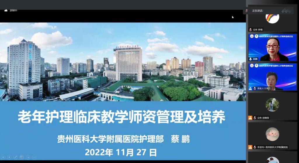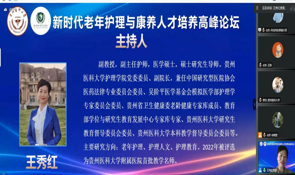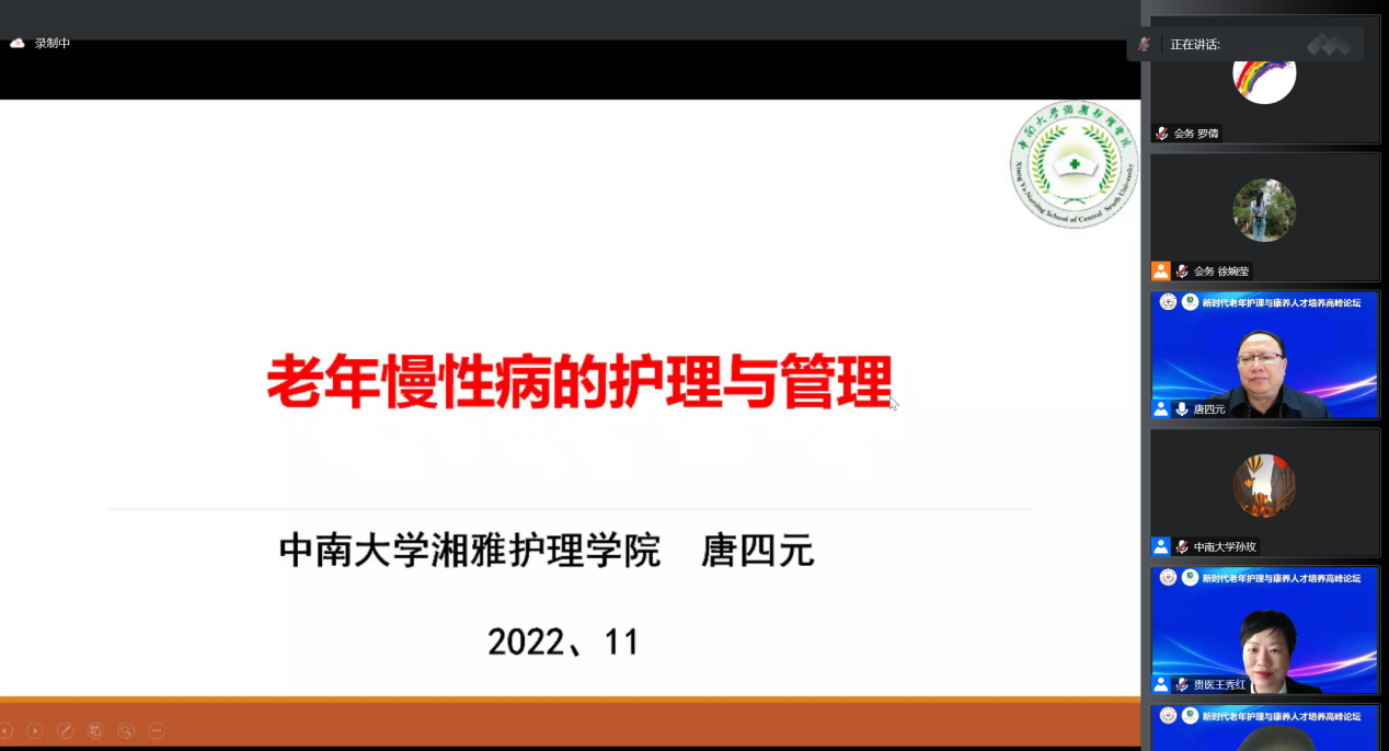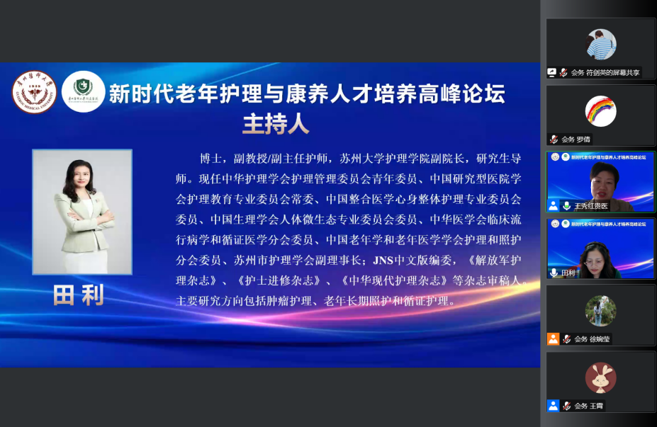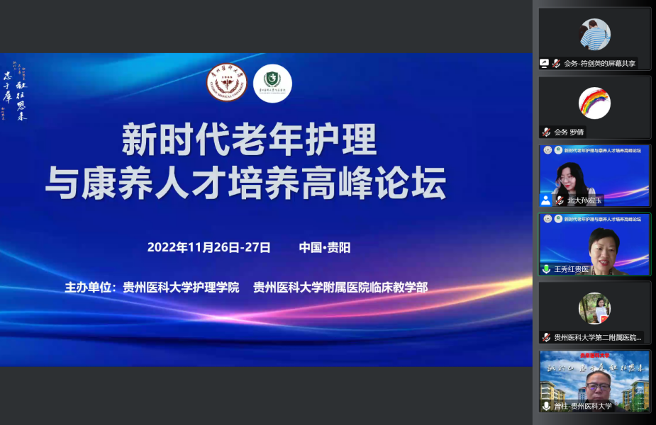 风正好扬帆,气正能聚力,在全国上下深入学习贯彻党的二十大精神之际,11月26日至27日,由kaiyun开云官方网站、kaiyun开云官方网站附属医院临床教学部举办的《新时代老年护理与康养人才培养高峰论坛》在云端成功举办。来自全国各地近210名专家学者、护理同仁、和高校师生齐聚云端参会。论坛由kaiyun开云官方网站副院长王秀红、苏州大学kaiyun开云官方网站副院长田利、中南大学湘雅kaiyun开云官方网站对外合作交流中心副主任孙玫分别主持。