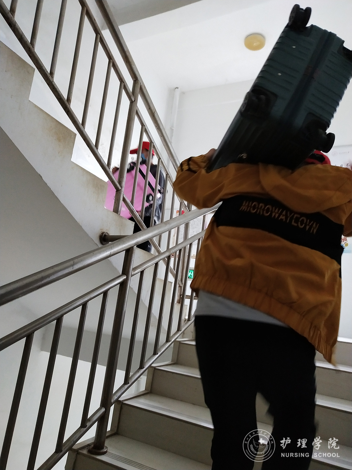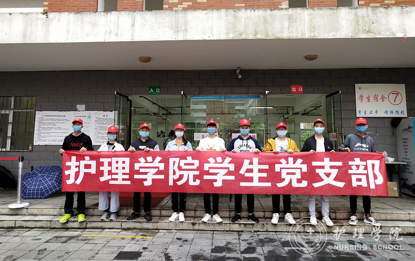 5月24日,2018级护理学乙班团支部副书记赵欢带领入党积极分子在南校区七栋宿舍楼下设点,开展帮助到校同学办理报到登记、搬运行李等志愿服务活动。志愿者们井然有序地指导抵达宿舍楼下的同学依次进行消毒、测量体温、登记信息并帮助返校同学搬运行李到寝室。