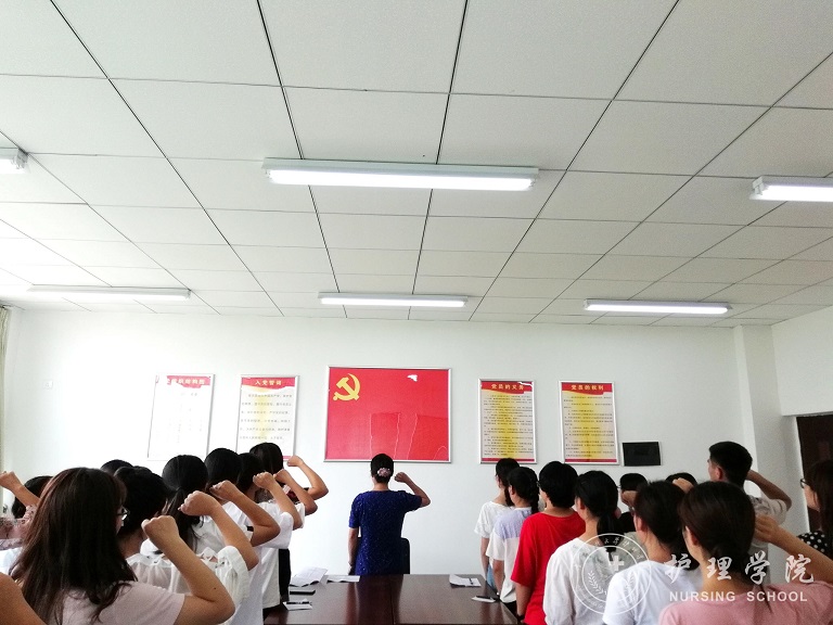6月29日中午,kaiyun开云官方网站在南校区kaiyun开云官方网站党员活动室举行新党员入党宣誓仪式。学院党委副书记杨英、学生党支部书记李颖、全体预备党员参加了活动。宣誓仪式由学生党支部书记李颖主持。