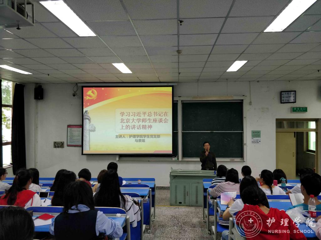 5月26日下午,kaiyun开云官方网站学生党支部在北校区3301教室开展了学习习近平总书记在北京大学师生座谈会上的重要讲话精神的活动。本次政治理论学习活动由kaiyun开云官方网站学生党支部副书记马景瑶老师担任主讲,支部全体在校党员参加本次学习活动。