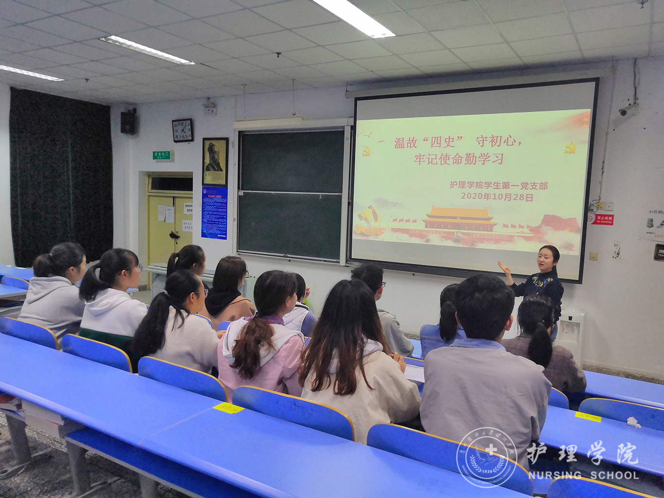 10月28日,为了深入学习贯彻习近平总书记关于加强党史、新中国史、改革开放史、社会主义发展史(以下简称“四史”)学习的重要讲话精神,进一步学习党的创新理论,筑牢思想根基,做到知史爱党、知史爱国,争做新时代学习型党员。kaiyun开云官方网站学生第一党支部在北校区3402教室开展了主题为“温故‘四史’守初心、牢记使命勤学习”的主题党日活动。会议由kaiyun开云官方网站学生第一党支部书记杨叶卿主持,全体同学通过线下、线上形式参加会议。