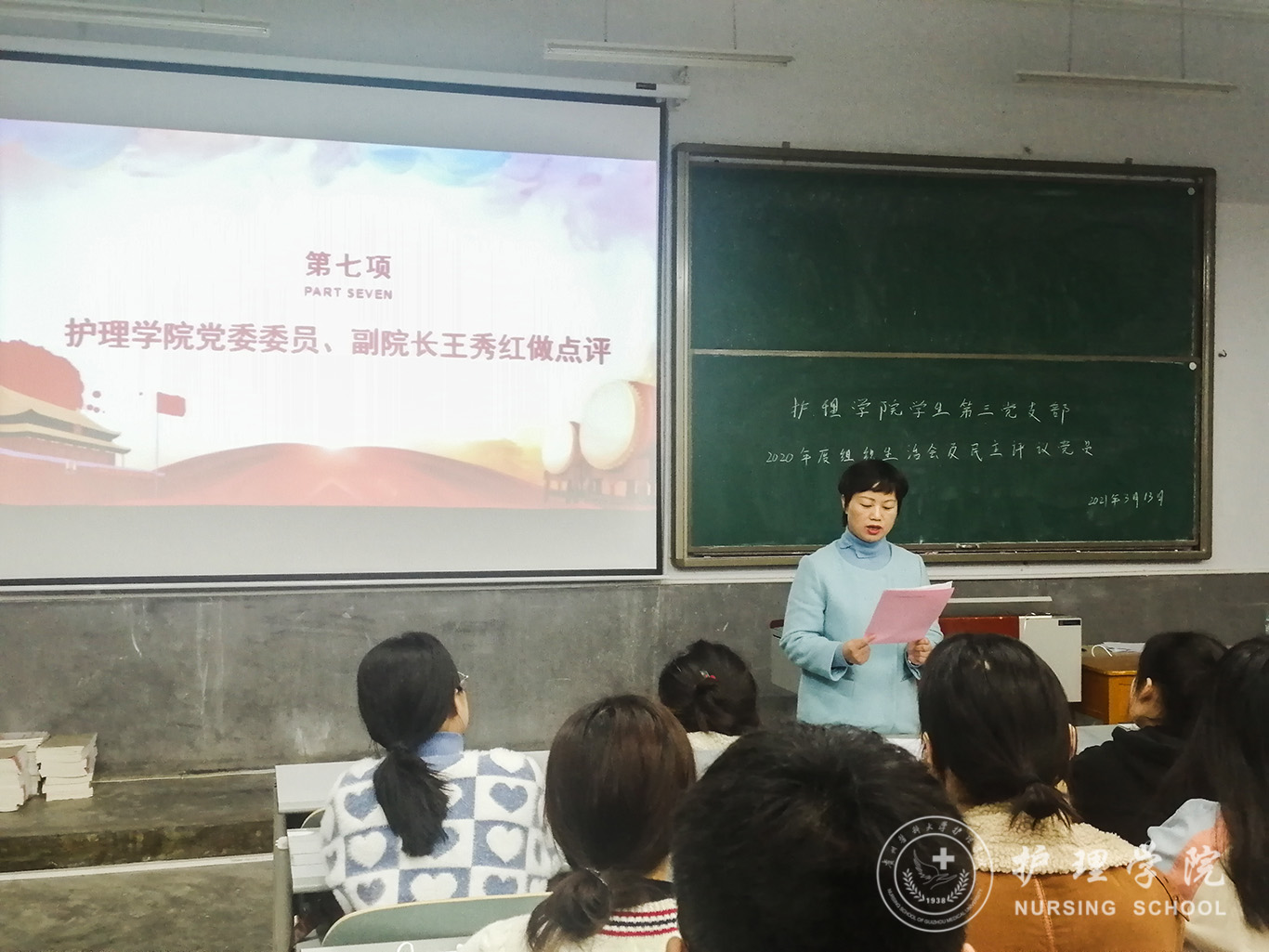 3月13日,为深入贯彻落实习近平新时代中国特色社会主义思想,全面落实新时代党的建设总要求和新时代党的组织路线,认真贯彻落实党的十九届五中全会精神和省委十二届八次全会精神,持续巩固深化“不忘初心、牢记使命”主题教育成果,根据《关于召开2020年度基层党组织生活会和开展民主评议党员工作的通知》(贵医党通〔2021〕8号)精神,kaiyun开云官方网站学生第三党支部在北校区普教8召开了2020年度组织生活会和开展民主评议的党员工作,会议由党支部书记刘妍主持,kaiyun开云官方网站党委委员、副院长王秀红及全体支部党员参会。