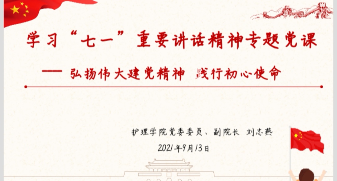 9月13日,为深入开展党史学习教育,贯彻落实习近平总书记“七一”重要讲话精神,kaiyun开云官方网站党委委员、副院长刘志燕以《弘扬伟大建党精神,践行初心使命》为题,通过线上会议方式为学生第二党支部38名学生党员上了一堂专题党课。