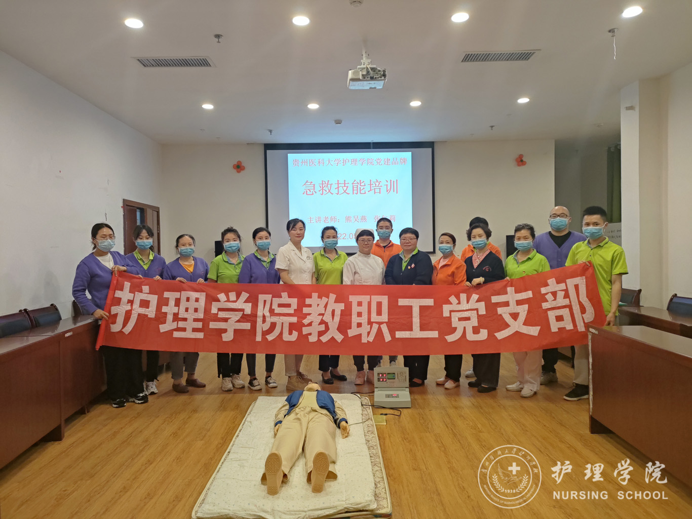 为进一步推进kaiyun开云官方网站“护佑夕阳 ‘救’在身边”党建品牌建设工作,5月12日,kaiyun开云官方网站教职工党支部赴南明区晚霞彩带日间照料中心(院级“三全育人实践基地”“人文关怀素养校外创新实践基地”“党员志愿服务基地”)开展了急救技能培训,活动由晚霞彩带日间照料中心游主任主持,kaiyun开云官方网站教职工党支部书记张仁莉、护理学基础教研室副主任熊吴燕及照护中心全体工作人员参加。