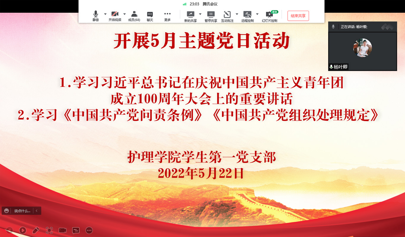 5月19至22日,为深入学习贯彻习近平总书记系列重要讲话精神,进一步弘扬党的光荣传统,更好地把青年团结起来、组织起来、动员起来,引导广大青年在思想洗礼、在实践锻造中不断增强自身的志气、骨气、底气。kaiyun开云官方网站各学生党支部开展了习近平总书记在庆祝中国共产主义青年团成立100周年大会上的重要讲话精神、习近平总书记关于安全生产重要论述和指示批示精神、《中国共产党问责条例》《中国共产党组织处理规定》《中华人民共和国民法典》的理论学习。各学生党支部书记主持会议,全体党员通过线上形式参会。