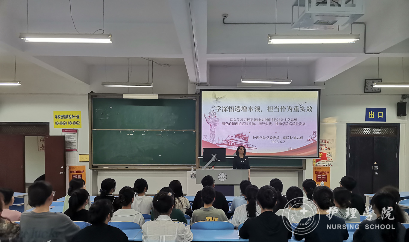 6月2日,为深入推进学习贯彻习近平新时代中国特色社会主义思想主题教育,牢牢把握主题教育“学思想、强党性、重实践、建新功”的总要求,做到学思践悟、以知促行,kaiyun开云官方网站党委委员、副院长刘志燕以《学深悟透增本领,担当作为重实效----深入学习习近平新时代中国特色社会主义思想 用党的新理论武装头脑、指导实践、推动学院高质量发展》为题在北校区2202教室为kaiyun开云官方网站学生第二党支部全体党员讲授了深刻而生动的主题教育专题党课。
