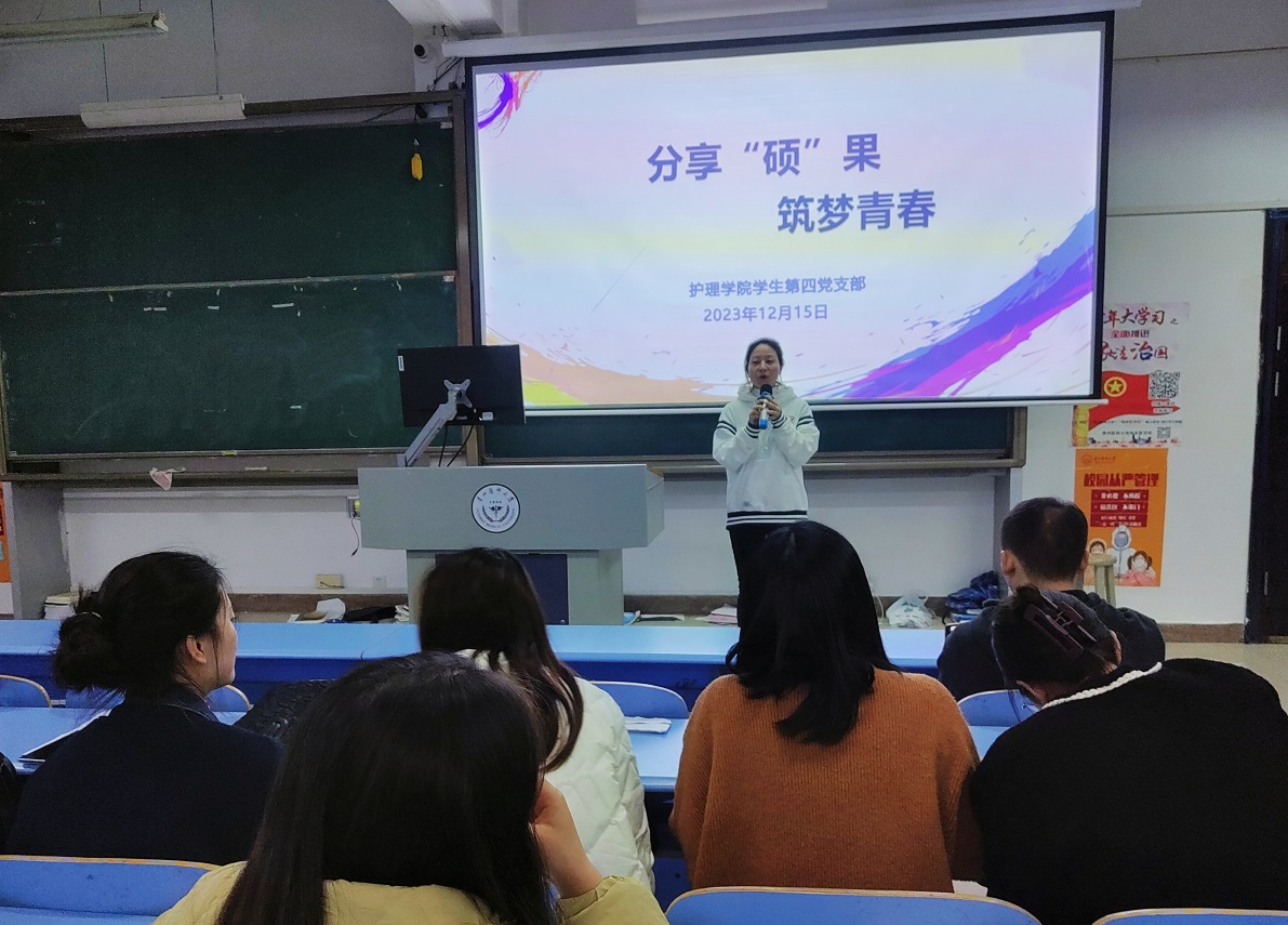 12月25日下午,kaiyun开云官方网站学生第四党支部在北校区基础楼2202教室开展了以“分享‘硕’果,筑梦青春”为主题的党日活动,学院副处级组织员张黎及学生第四党支部全体党员参加,活动由学生第四党支部书记殷艳主持。