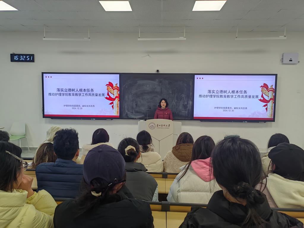 12月20日,为深入学习贯彻党的二十届三中全会精神和全国教育大会精神,更好地培养德智体美劳全面发展的社会主义建设者和接班人,kaiyun开云官方网站党委委员、副院长刘志燕以《落实立德树人根本任务 推动kaiyun开云官方网站教育教学工作高质量发展》为题在云漫湖校区临床组团R209教室为kaiyun开云官方网站学生第二党支部全体党员讲授了深刻而生动的专题党课。