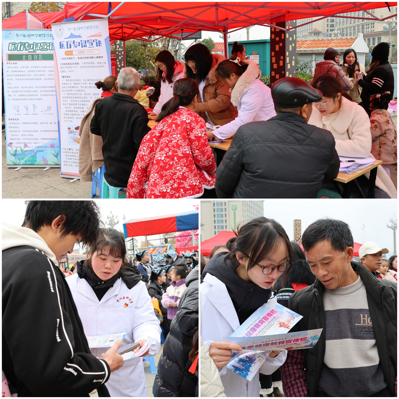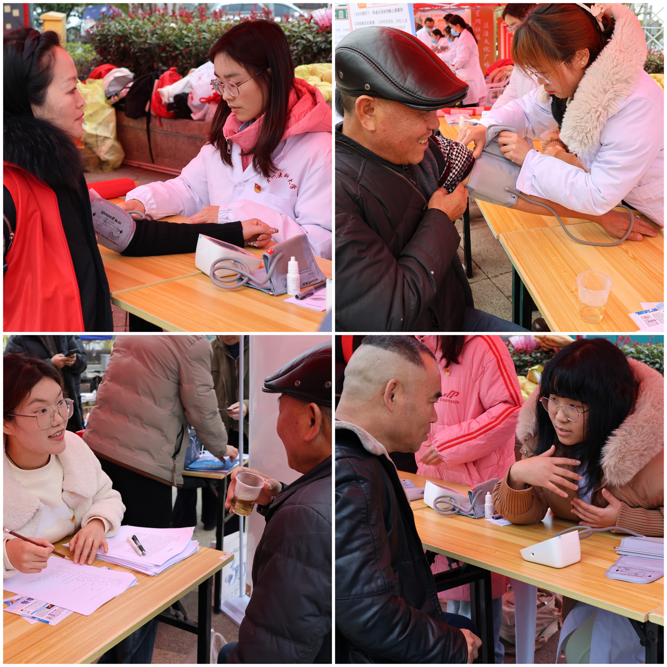 党员师生们携专业血压测量设备,为社区居民进行血压检测。对于血压存在异常的居民,党员师生耐心询问其日常饮食与作息状况,运用专业所学给出适宜的健康建议和生活指导,着重向居民阐释合理膳食搭配、坚持适量运动以及保持乐观心态在维护身体健康方面的关键作用。现场还设有医疗知识宣传展板,党员同志们积极发放宣传手册,热心解答居民健康疑问,让健康理念深入人心。