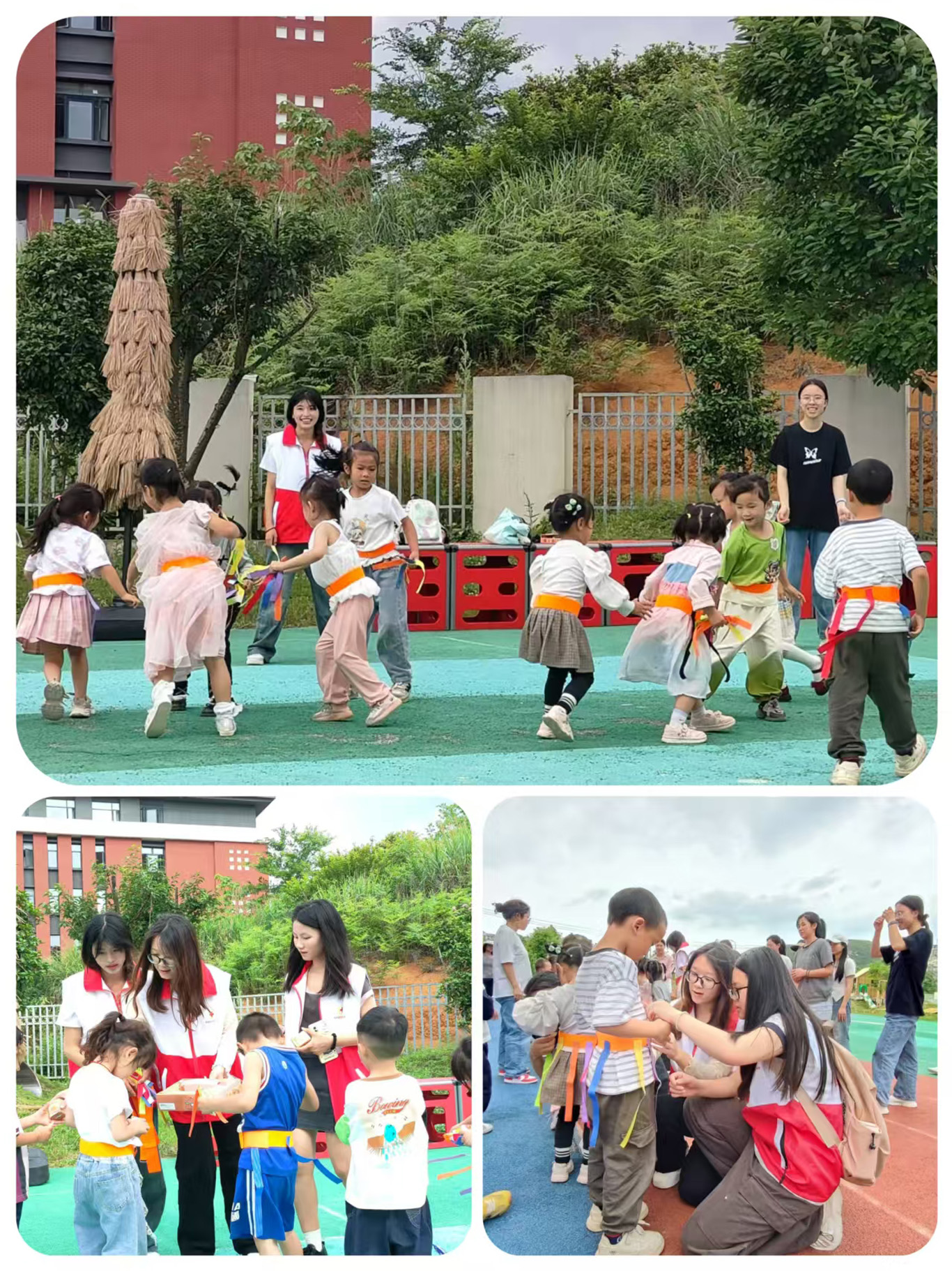 健康宣讲的热潮未褪,实践互动的欢歌已起。操场上,“老鼠笼”“两人三足赛龙舟”“捉尾巴”等传统游戏被赋予了新的健康内涵。“两人三足赛龙舟”时,孩子们喊着整齐的号子,歪歪扭扭却坚定地向终点挪动,小脸上漾着得意的红晕。追逐间,孩子们的跑跳能力与反应速度在不知不觉中提升。