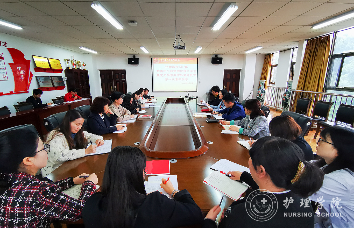 最后杨英强调要深入开展党史学习教育和“牢记殷切嘱托、忠诚干净担当、喜迎建党百年”专题教育,结合工作实际和学院发展以党建为引领,锻造学院发展的“教学魂”,培优建强科研团队、打造‘护理’品牌,培育学院发展的“育人果”。