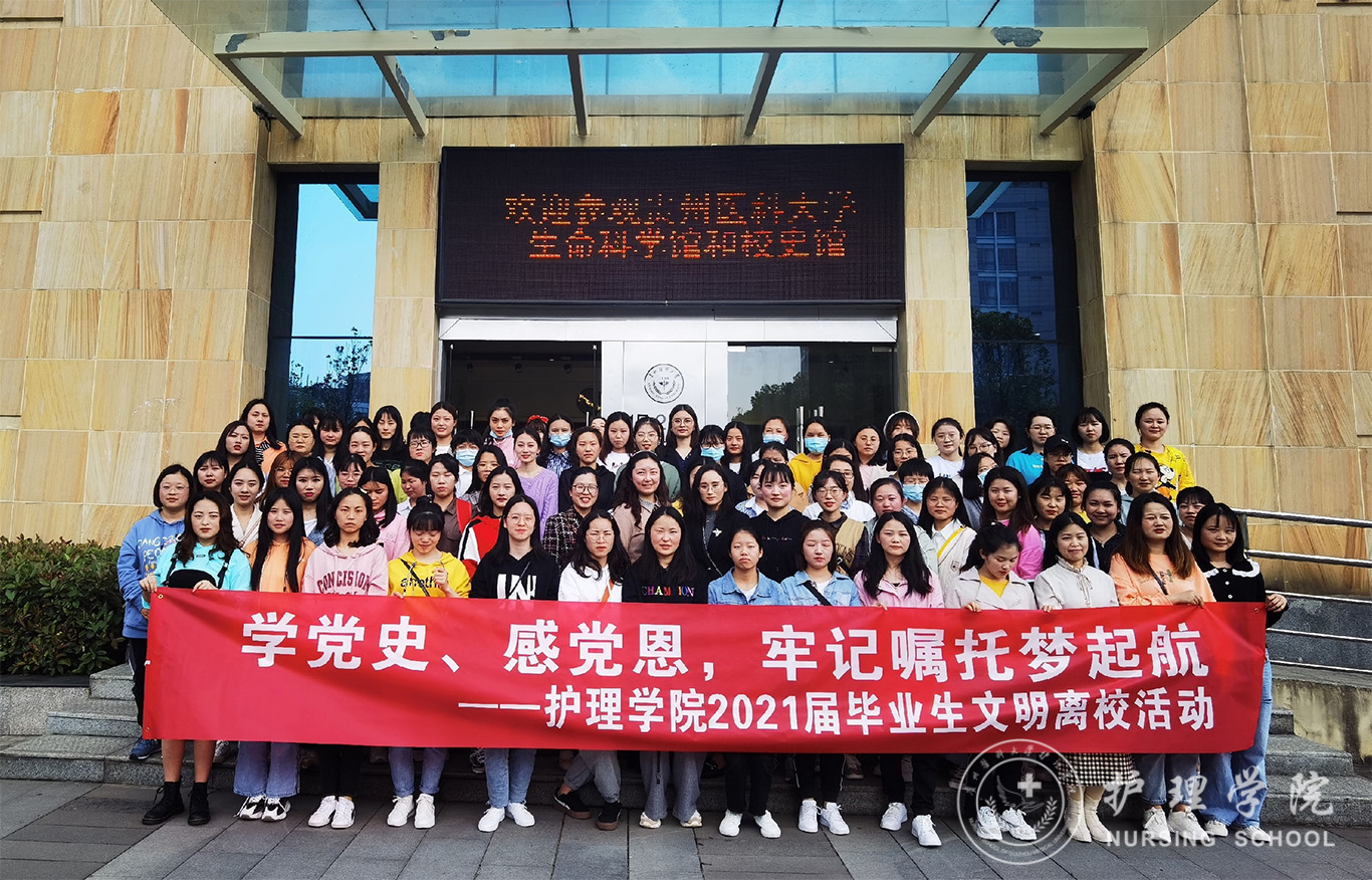 4月21日,为了让开云毕业生进一步了解校史校情,激发学生的爱党爱国爱校情怀,kaiyun开云官方网站开展了“学党史、感恩党,牢记嘱托梦起航”--kaiyun开云官方网站2021届毕业生文明离校活动,本次活动由kaiyun开云官方网站正科级组织员曾敏、学生科副科长毕丽及团委副书记王晓玲带队,2017级护理学专升本全体学生参与。