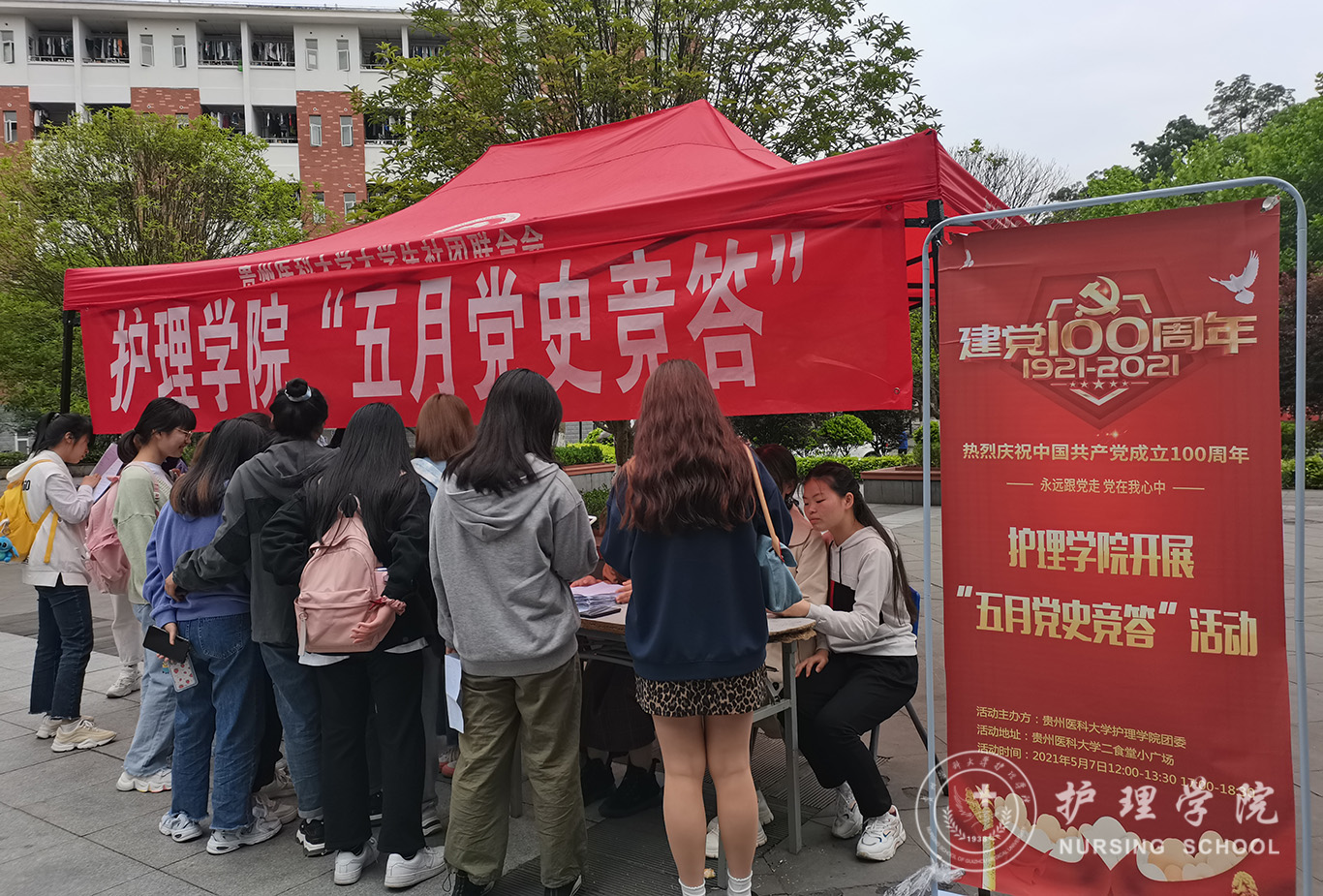 5月7日,为了引导广大团员青年从党史学习教育中进一步坚定共产主义信仰,在四史教育中汲取精神力量,为实现中国梦注入无限生机和活力。开云于南校区二食堂小广场开展了五四主题团日活动之五月党史竞答活动。本次活动由kaiyun开云官方网站青分会组织,开云第44期团校全体成员、2019级-2020级同学参与了此次活动。