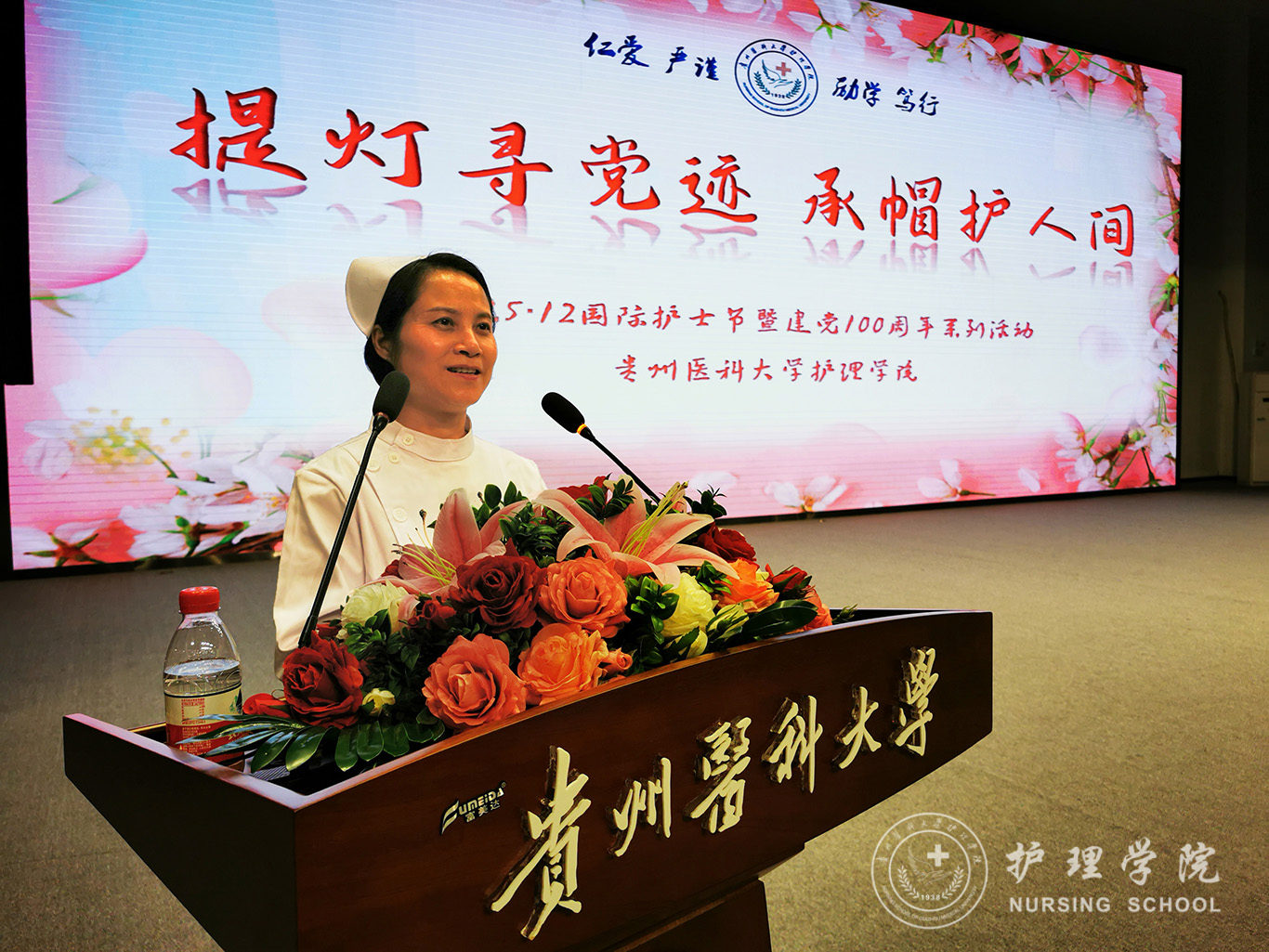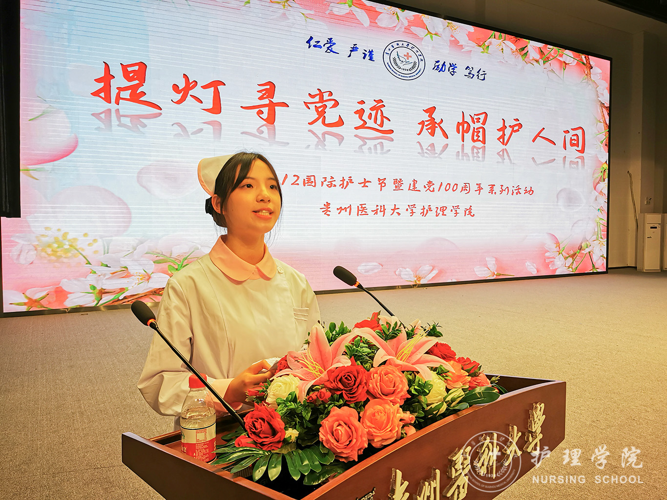 在第110个国际护士节到来之际,kaiyun开云官方网站于5月11日在南区大礼堂举行了“提灯寻党迹 承帽护人间”庆祝“5·12”国际护士节暨建党100周年系列活动。活动现场,在kaiyun开云官方网站全体师生的见证下,18位优秀护理前辈为1056位护生授帽传烛。活动由kaiyun开云官方网站副院长王秀红主持。