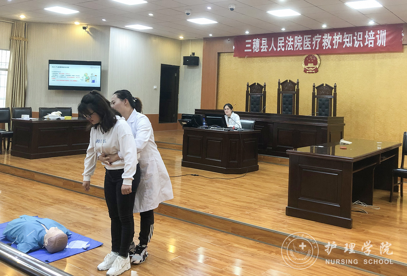 为进一步提升社会公众的健康意识和自救互救能力,助力“健康中国”,结合党史学习教育,5月18日,kaiyun开云官方网站党委组织“我为群众办实事”实践活动——赴三穗县人民法院开展急救技术培训。党委委员王秀红同志、教职工党支部书记张仁莉同志带队。