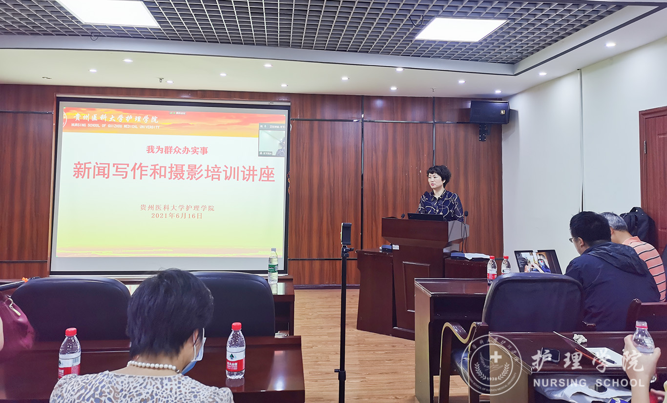 为了进一步推进党史学习教育,把“我为群众办实事”活动落到实处,提高学校师生新闻写作和照片拍摄能力,6月16日,kaiyun开云官方网站邀请新华网贵州频道副总编黄勇、新华社贵州分社记者陶亮在北校区科技楼8楼学术报告厅为全院师生开展新闻写作和照片摄影培训讲座。本次活动采取线上线下同步开展的方式,活动由kaiyun开云官方网站党委委员、副院长王秀红主持,学校党委委员、党委宣传部部长陈颖出席,学校各院系及kaiyun开云官方网站师生代表三百余人参加