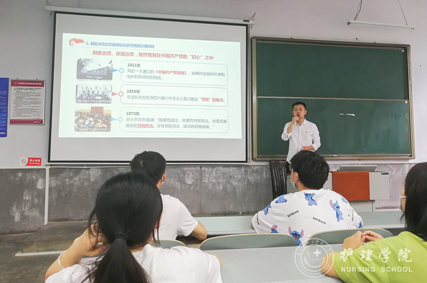6月16日,为深入推进党史学习教育和“牢记殷切嘱托、忠诚干净担当、喜迎建党百年”专题教育走深走实,引导广大党员干部学习领会党内法规制度,切实担负起全面从严治党政治责任,kaiyun开云官方网站学生第二党支部邀请kaiyun开云官方网站党委委员、副书记何为讲了一堂题为《制度治党——全面从严治党的重要保障》的生动党课,第二党支部全体学生党员于北校区普教六参会。