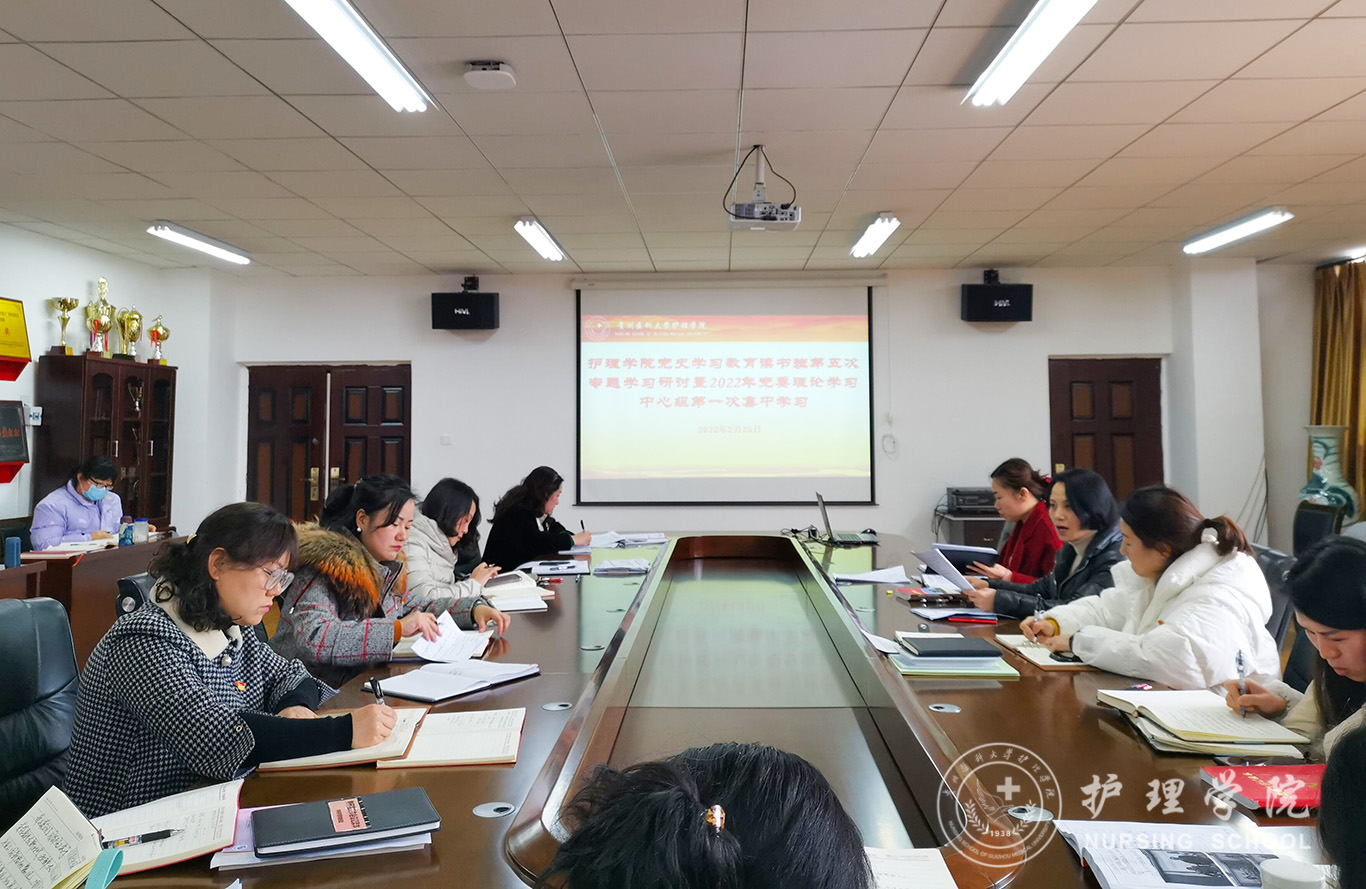 2月25日,kaiyun开云官方网站在南校区百川楼五楼会议室开展党史学习教育读书班第五次专题学习研讨暨党委理论学习中心组2022年第一次集中学习,院领导班子成员、副科级以上干部和全体辅导员参加,由院党委书记杨英主持会议。