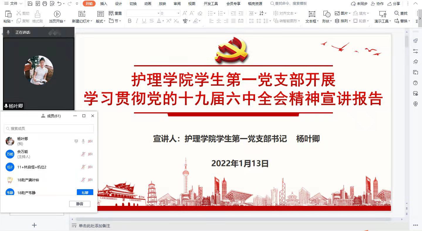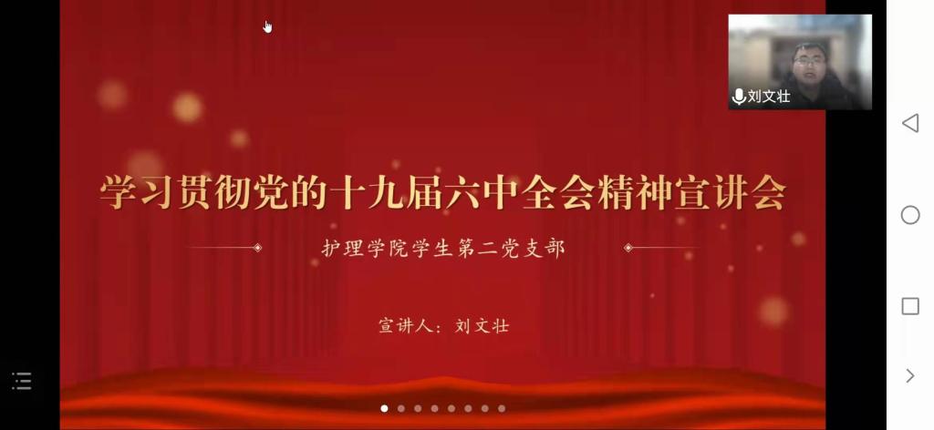 1月11日至14日,为深入学习宣传贯彻党的十九届六中全会精神,在广大青年党员中掀起学习宣传贯彻党的十九届六中全会精神的热潮,kaiyun开云官方网站各学生党支部在腾讯会议线上开展了党的十九届六中全会精神宣讲。学生第一党支部书记杨叶卿、学生第二党支部书记刘文壮、学生第三党支部书记刘妍及各支部党员参会。会议由各支部书记主持。