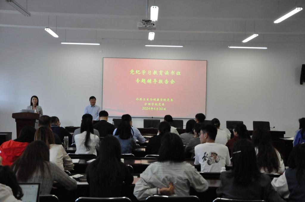 4月30日上午,kaiyun开云官方网站在博雅楼C3-2-11举行党纪学习教育读书班专题辅导报告会。学院党委领导班子成员、副科级以上干部、各党支部书记及全体辅导员参加学习。