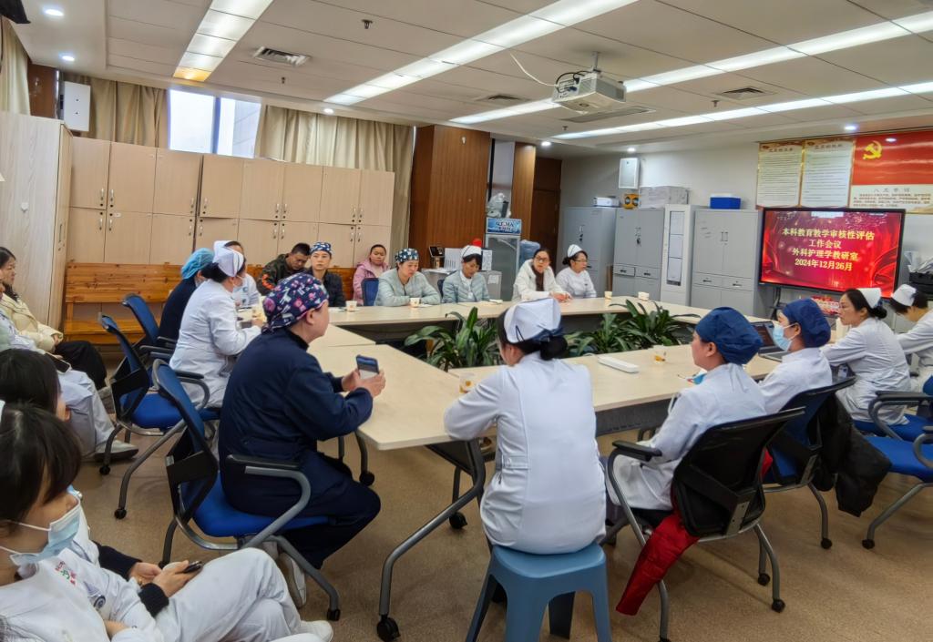 12月26日,为了全面回顾和总结本学期外科护理学教研室教学工作以及传达新一轮本科教育教学审核评估的重要性和内容,明确改进方向和目标,提升教学质量与管理水平,外科护理学教研室在kaiyun开云官方网站附属医院泌尿外科16楼学习室进行了2024-2025学年第一学期教学总结及本科教育教学审核评估工作会议,会议由外科护理学教研室主任韩樱主持,教研室全体教师参加了会议。首先,外科护理学教研室副主任乔筠对本学期教研室承担的教学工作、取得的主要成绩以及存在的不足等方面进行了汇报,参会人员就会议中提到的各种问题进行了反馈和讨论,共同商讨解决方案。