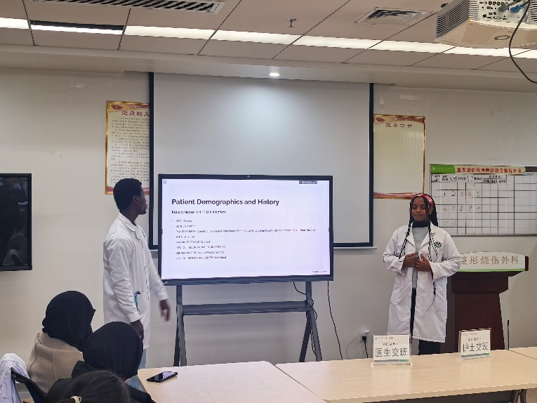 跨域融合,助力“一带一路”医学人文互通。活动将国际化视野融入教学全流程:坦桑尼亚学员在病房实践中用中英文实施人文关怀,津巴布韦学生通过视频案例分析展现多元文化视角。结业汇报会上,中外学生以跨文化团队形式展示学习成果,医护导师从“技能操作—应急反应—文化共情”多维度评价,验证了医学人文精神的全球共通性。烧伤整形科医护总结指出,此类实践为“一带一路”医疗人才搭建了“技术共享”与“文化互鉴”的双向桥梁,其“双语教学+真实场景+联合考核”模式可为跨境医学教育合作提供可复制经验。