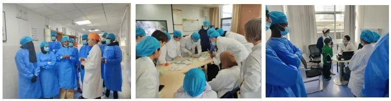 医教协同,构建“医护双导师”育人新模式。活动以“医护一体”理念为核心,打破学科壁垒,创新“双导师制”教学模式。主治医师与资深护士组成联合带教团队,在门诊接诊、手术示教、病房换药等场景中同步开展技能传授与理论阐释。通过门诊手术室的缝合打结示范、病房换药环节的疼痛评估教学,学生直观体验“理论—操作—人文关怀”的全链条临床思维培养。科室特别设置缝合练习站与模拟考核区,以“医护联合评分”机制强化无菌原则、操作规范及团队协作能力,实现了临床胜任力与职业素养的双重提升。