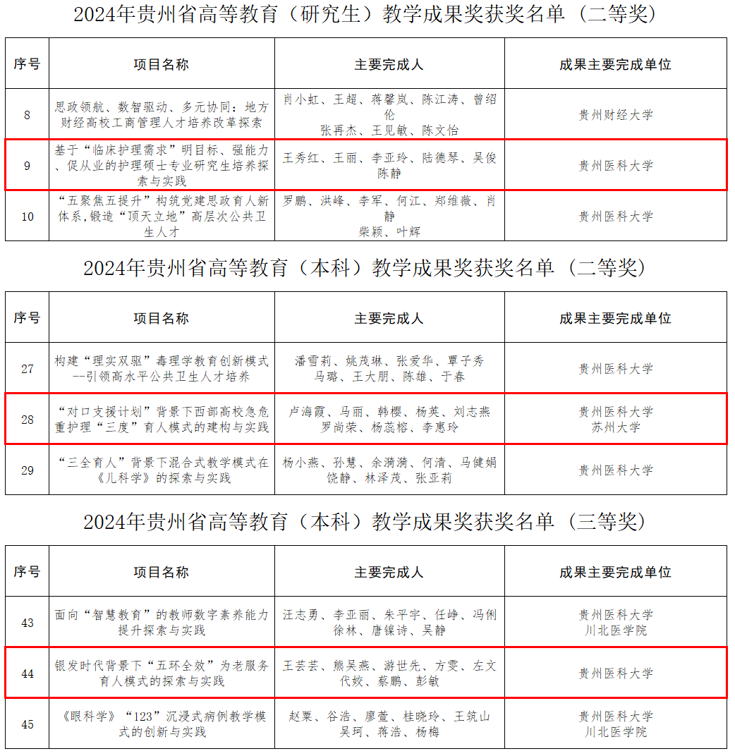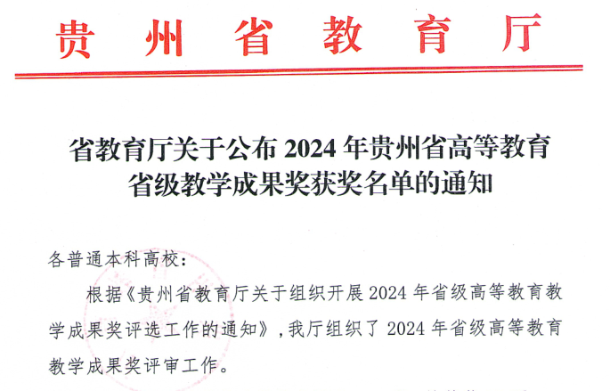 kaiyun开云官方网站喜获2024年贵州省高等教育教学成果奖喜报