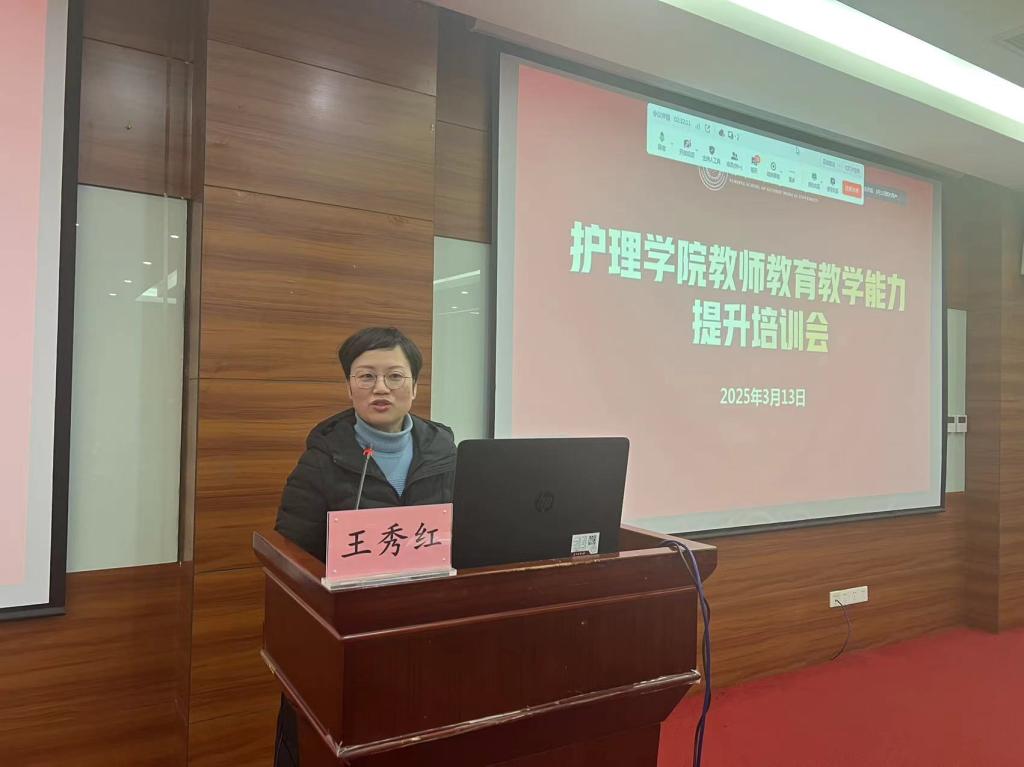 王秀红作总结发言,教师做为教育高质量发展的第一资源,应始终保持对护理行业前沿的敏锐洞察,做与时俱进的学习型教师,不断深耕专业领域前沿,创新信息化教学手段,以仁爱之心践行育人使命,以工匠精神打磨教学品质。全体护理教师要携手共进,为培养新时代高素质护理人才贡献力量,助力护理教育教学高质量发展。