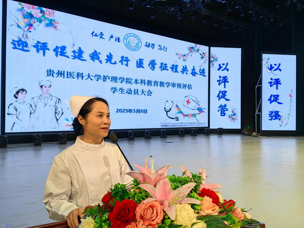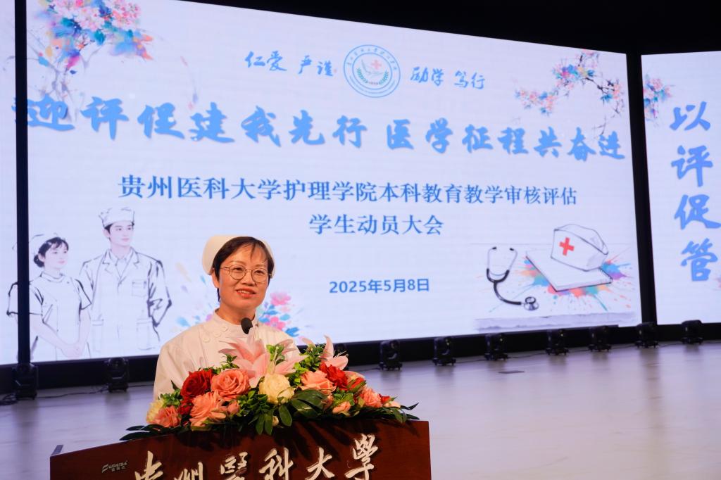 王秀红指出,本次教育教学审核评估不仅是对学校及学院本科人才培养的综合考核,更是学校和学院深化内涵建设、推动高质量发展的关键契机,全院师生要把握时机,积极融入到评估工作中。她以“迎‘三做’之考,展护理风貌”为题,给同学们提出三点要求:一是做好主人,传承中华礼仪文明之风,以主人翁的姿态热情主动参与;二是以良好的精神面貌,做正能量的事,为学校的评估增色添彩;三是踏实进取做好学问,要牢记学好专业服务社会的使命,遵守课堂纪律,积极认真投入学习,当好学校和学院形象的“金牌代言人”。