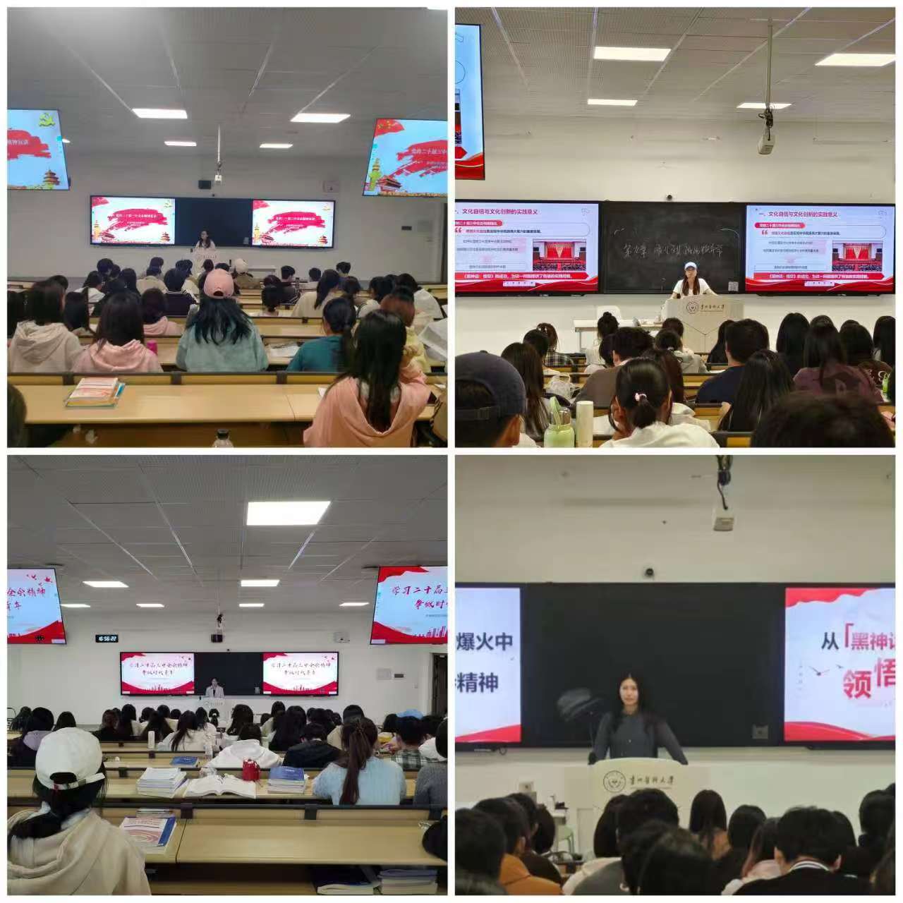 各班精心策划,通过主题宣讲、案例展示等形式,围绕全会提出的深化改革、创新驱动等议题,结合学生实际从内外纵横四个方位引导学生入脑入心。一是引导学生内向发力,深入学习、深化转化,加强学习“练内力”;二是引导学生外向发力,善借资源、打通路径,多法并用“借外力”;三是引导学生纵向发力,解决问题、寻根朔源,真抓实干“挖潜力”;四是引导学生横向发力,求真务实、敢作善为,加强作风“增活力”。同学们积极参与,踊跃分享了理论学习心得和专业实践成果,展现了新时代青年信念如磐、“青”力“青”为,表明了新时代青年将理论知识转化为实际行动的能力和决心。